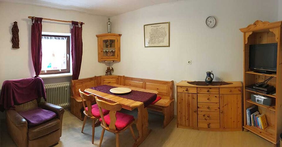 Die Ferienwohnung ist gemütlich und rustikal eingerichtet und bietet 2-4 Personen genügend Platz.